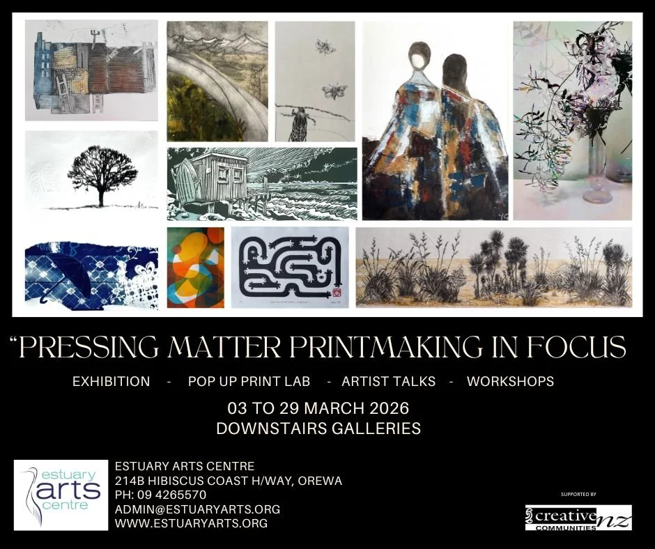 Currently, on the Northshore of Auckland I have two works selected for the “Pressing Matters” exhibition at the Estuary Arts centre in Orewa. The exhibition showcases Printmaking in all of its expressions, all works are for sale and it runs for the month of March 2026. Go check it out!